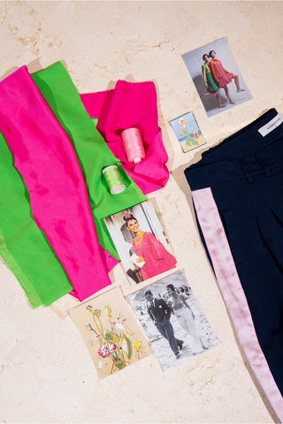 Statement dressing was made for company. We’ve upped the voltage and embraced the brights with our new season Gabardine woven sets.