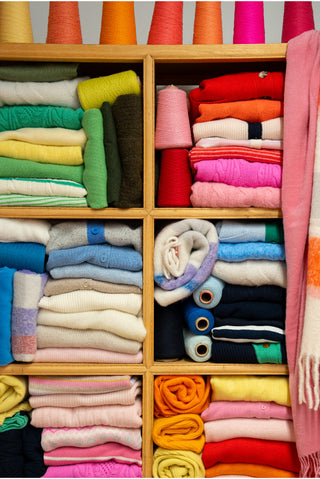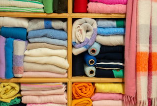 If possible, a sealed plastic tub is a good option as you can prevent moths from entering and eating your knits. We like to loosely roll our knits and try not to overfill the box to avoid stubborn creases.