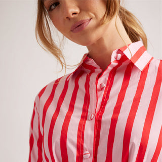 Tartufo dress! Named after the delicious layered dessert, our shows topping parasol stripe number is the perfect sweet treat for a one-stop outfit in crisp 100% cotton poplin.
