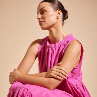 Crafted in our dreamy cotton voile. Our new collection of lurex striped styles are perfect for nailing that festive style brief. Opt for a two piece skirt and shirt, our famous Portofino dress (pictured) or the fun and flirty Cannes dress with shirred bodice.