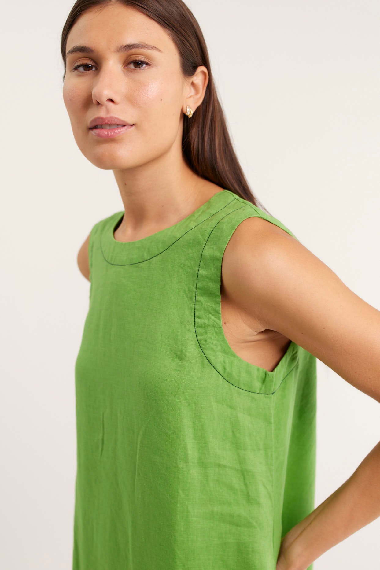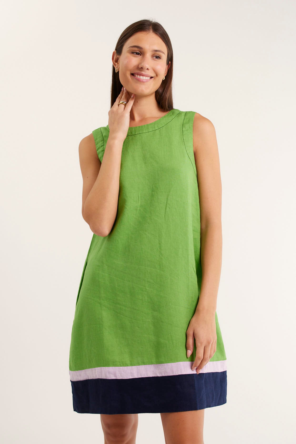 Vespa Dress In Linen In Moss Splice