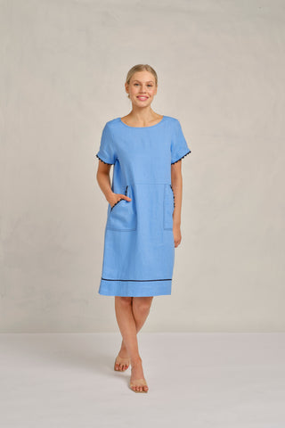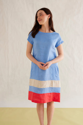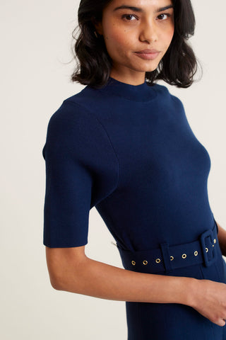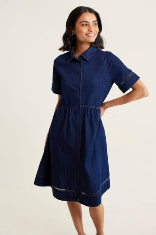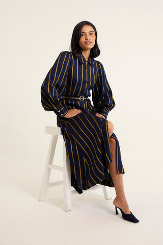 Kennedy Cotton Silk Dress In Navy Astoria Print