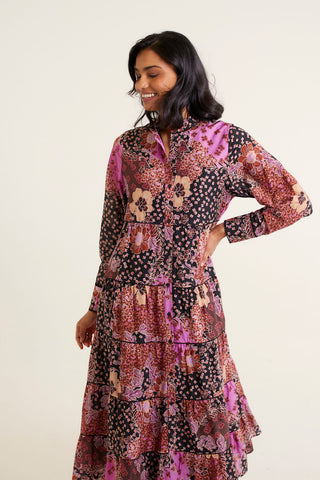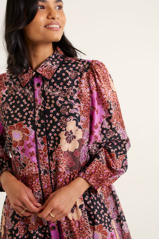 Maxy Cotton Silk Dress Magenta Banksia Print