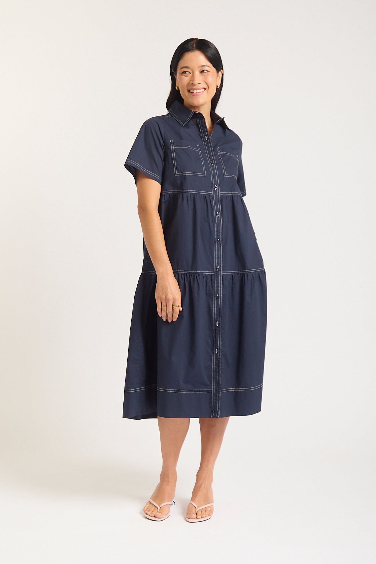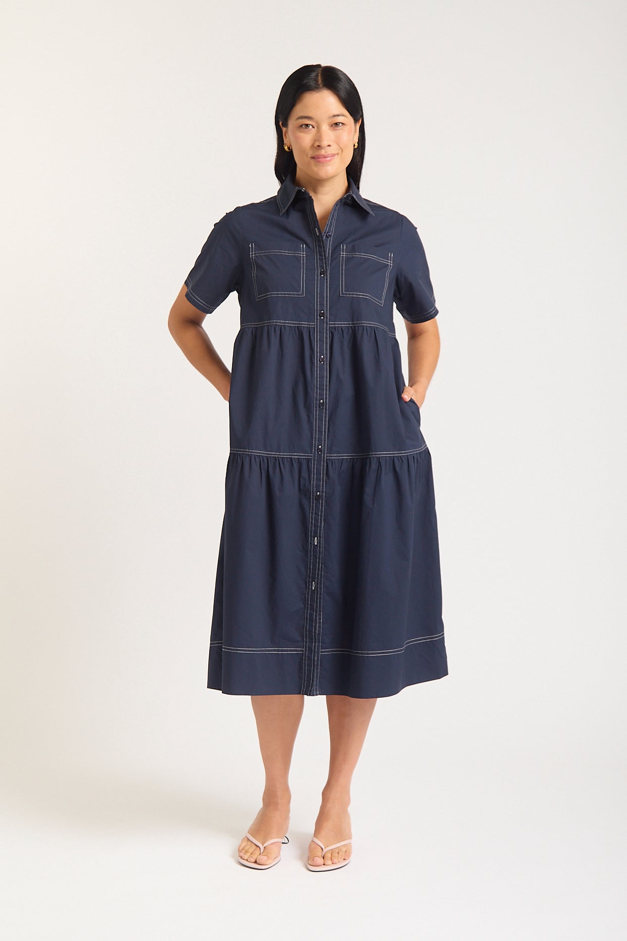 Hazel Poplin Midi Dress In Navy