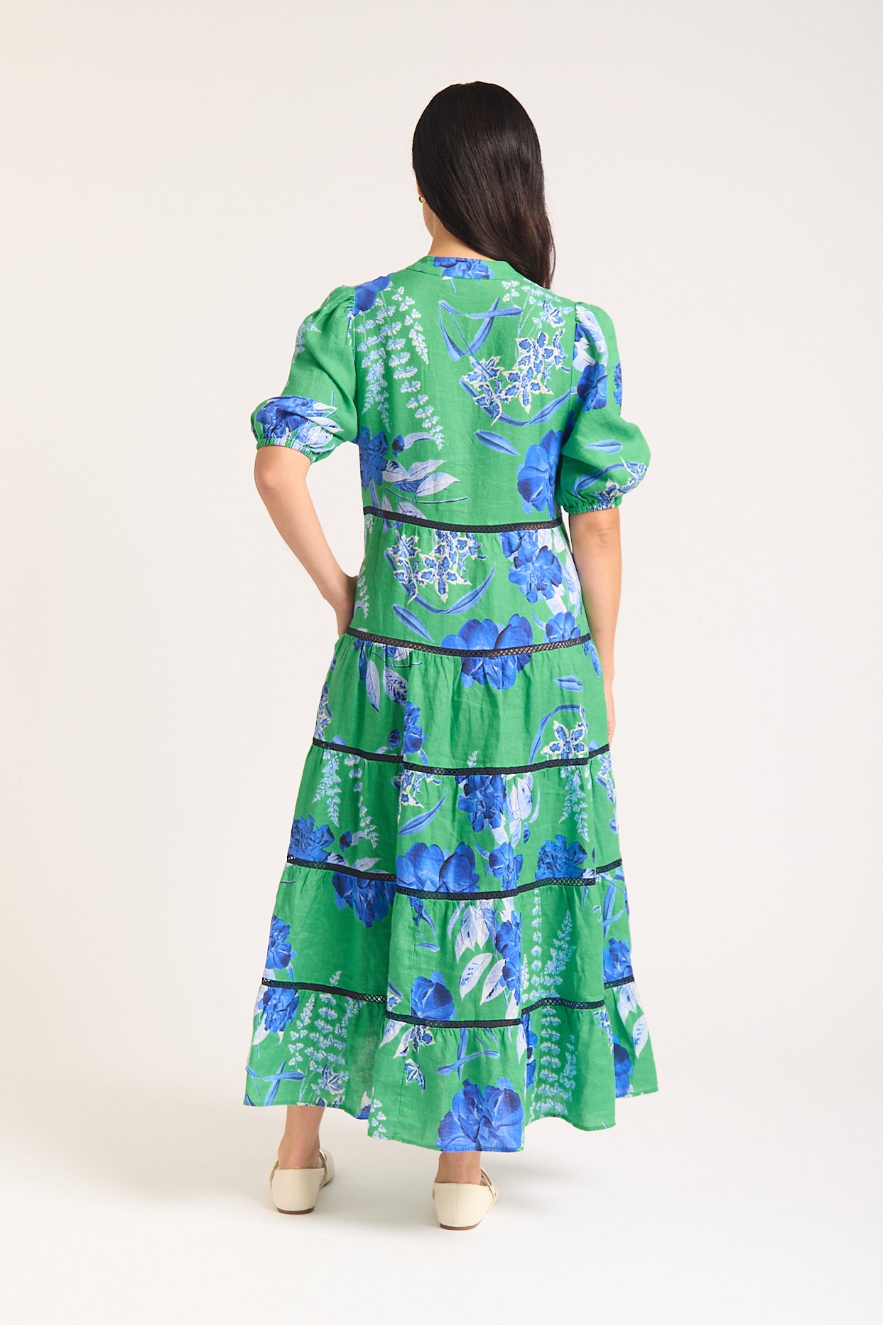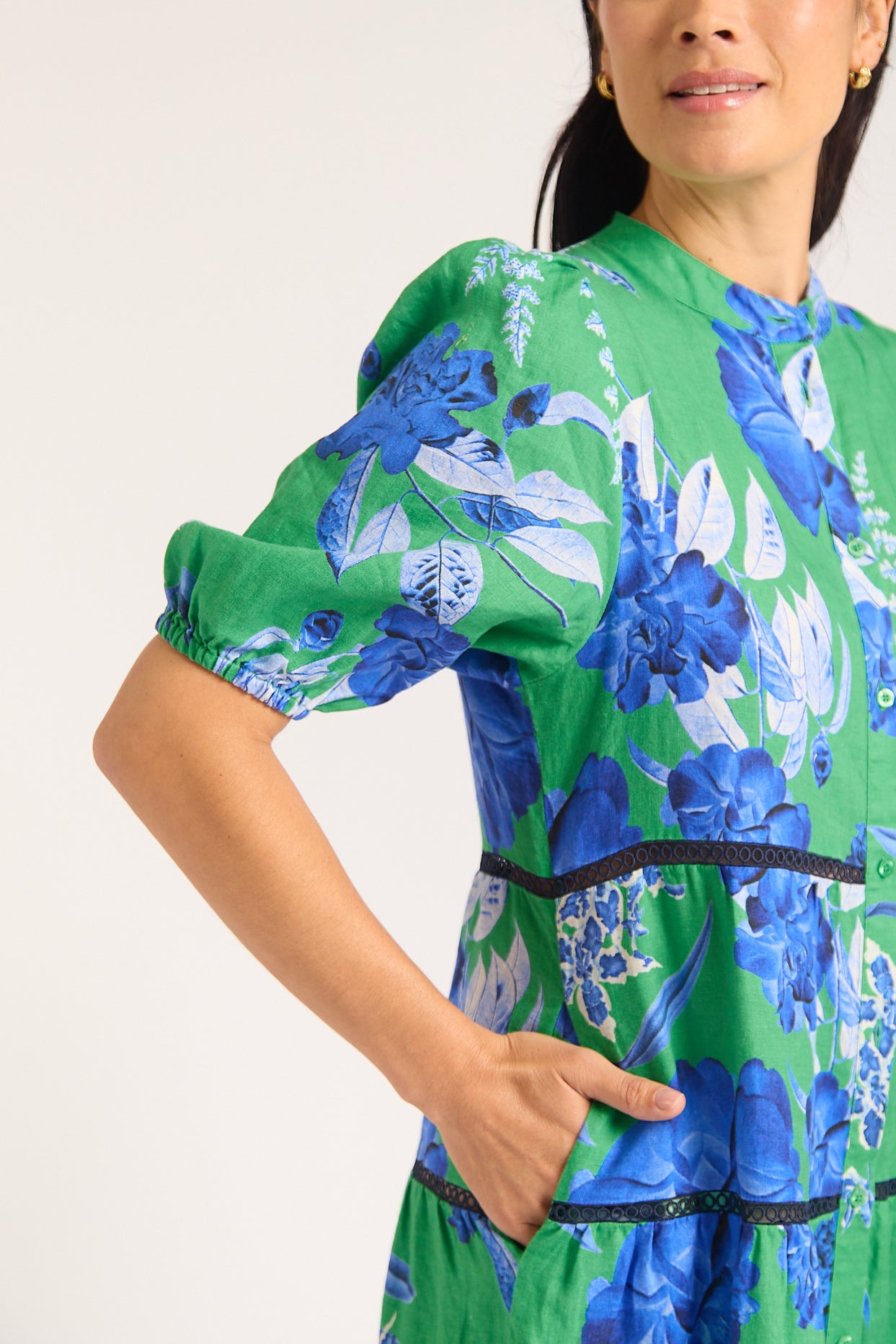- Emerald Green with Blue Floral Print