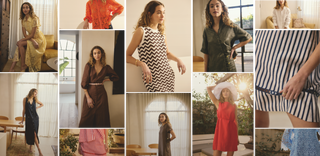 Woman in a striped dress standing in a garden with greenery around
