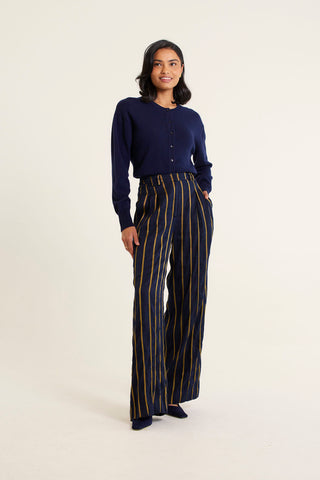 Quincy Linen Frankie Stripe Pant In Ink/Gold