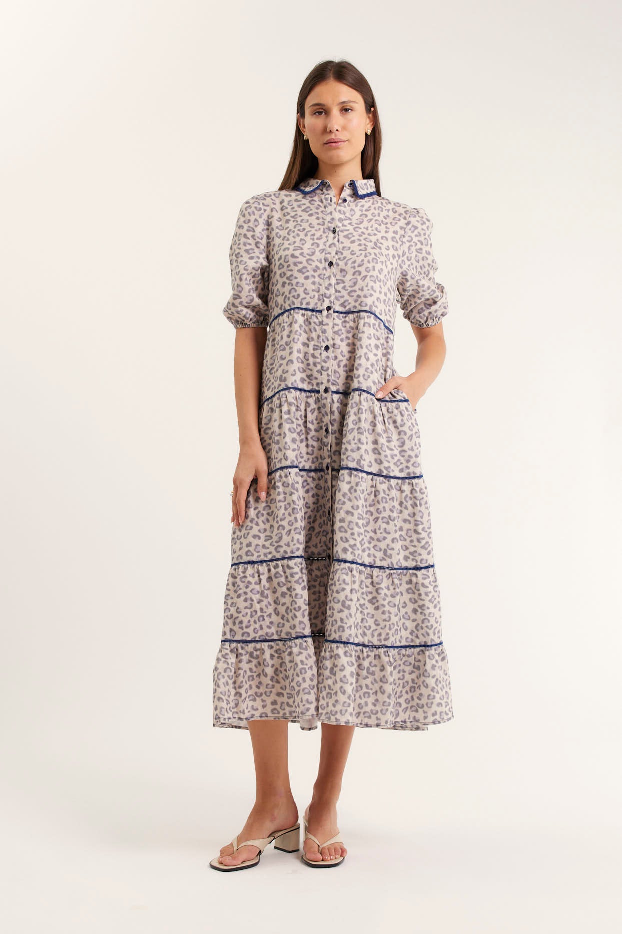 • Button down, tiered dress
