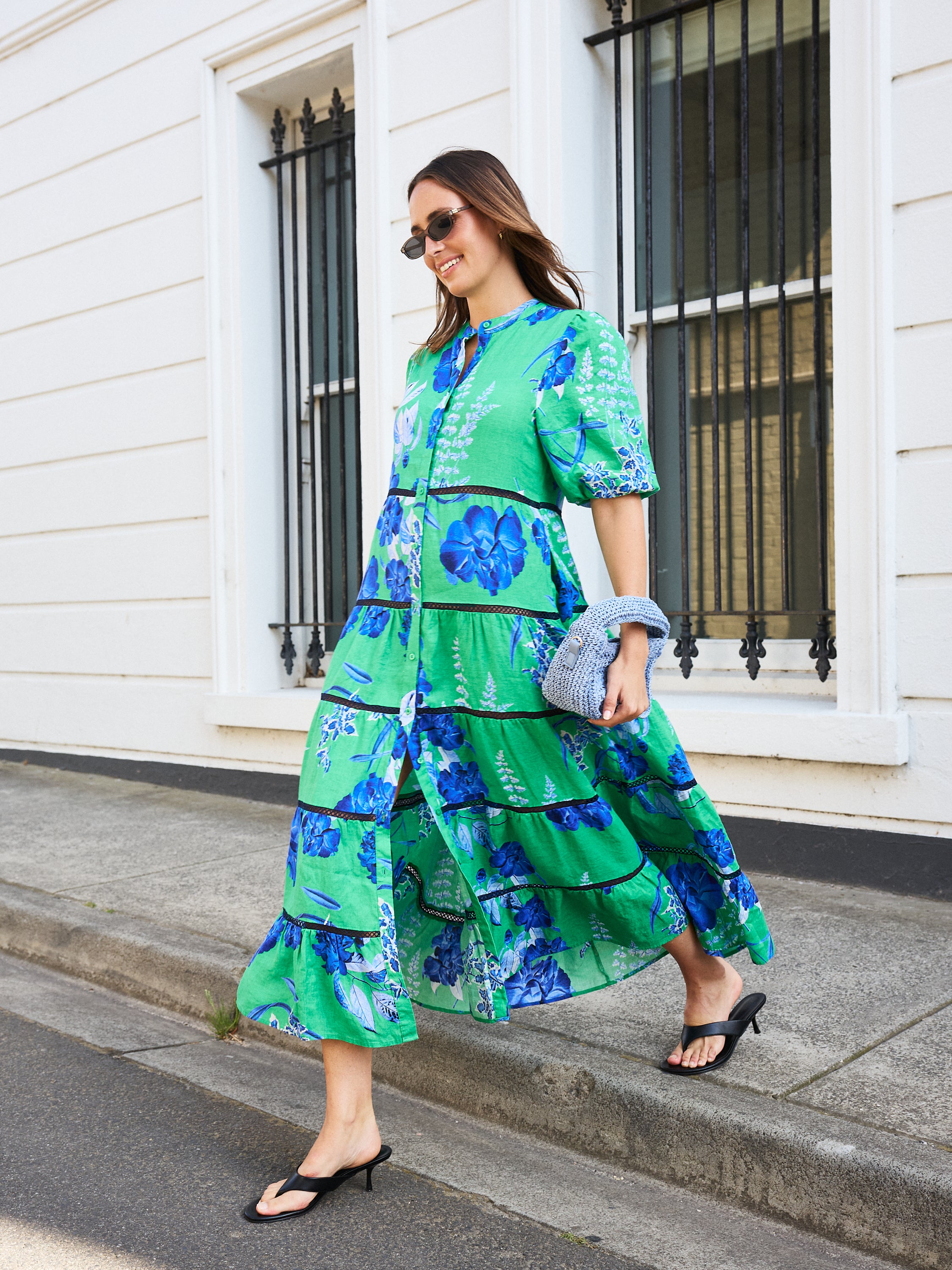 - Emerald Green with Blue Floral Print