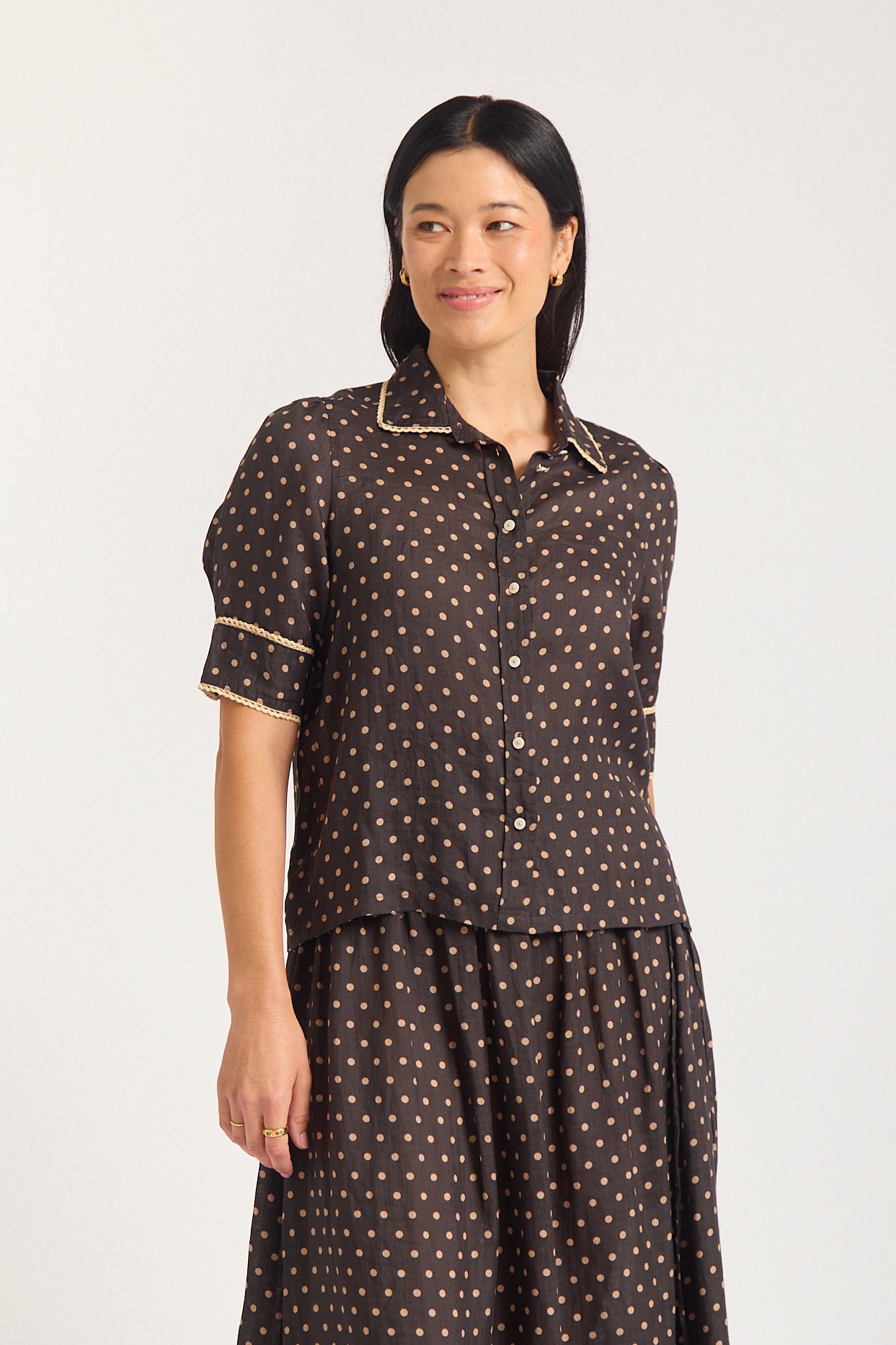 Ruby Ramie Shirt In Choc/Beige